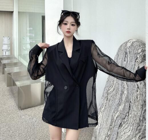 トップス レディース シャツ アウター シースルー ブルゾン スーツ エレガントでスタイリッシュなシースルー素材を使用したレディースブルゾンです!軽やかな着心地で、さまざまなシーンに合わせてお楽しみいただけます。トップスとしてもアウターとしても重宝するデザインで、通勤やデイリーユース、特別な日のコーディネートに最適です。 透け感のあるシースルー素材が、女性らしい印象を与え、シンプルながらも存在感を放つ一着です。ストレッチ性に優れているため、動きやすく快適な着用感を提供します。オフィスカジュアルからカジュアルな外出まで、様々なスタイルにマッチします!
