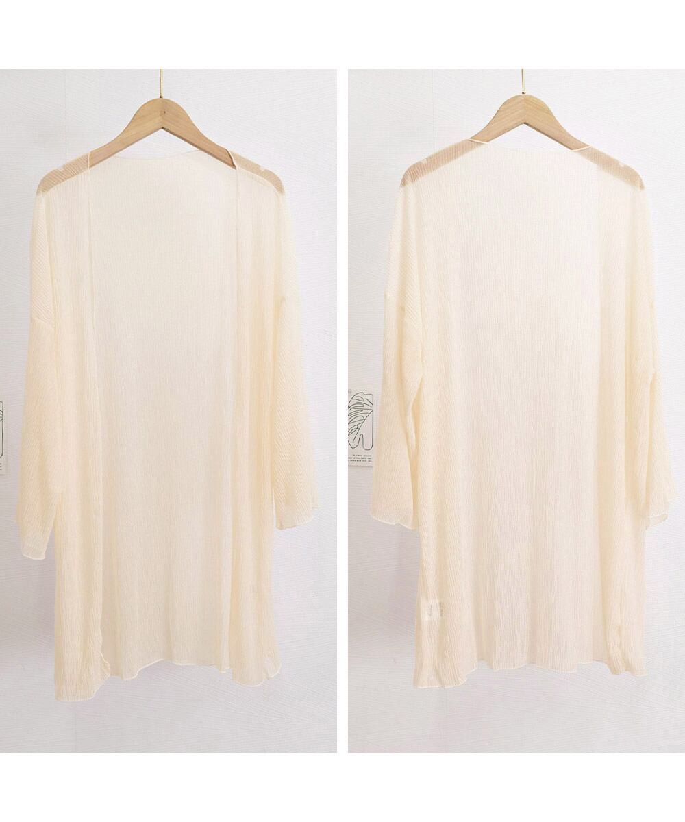 羽のように軽やかなシアー素材が魅力の、薄軽ロングカーディガン。