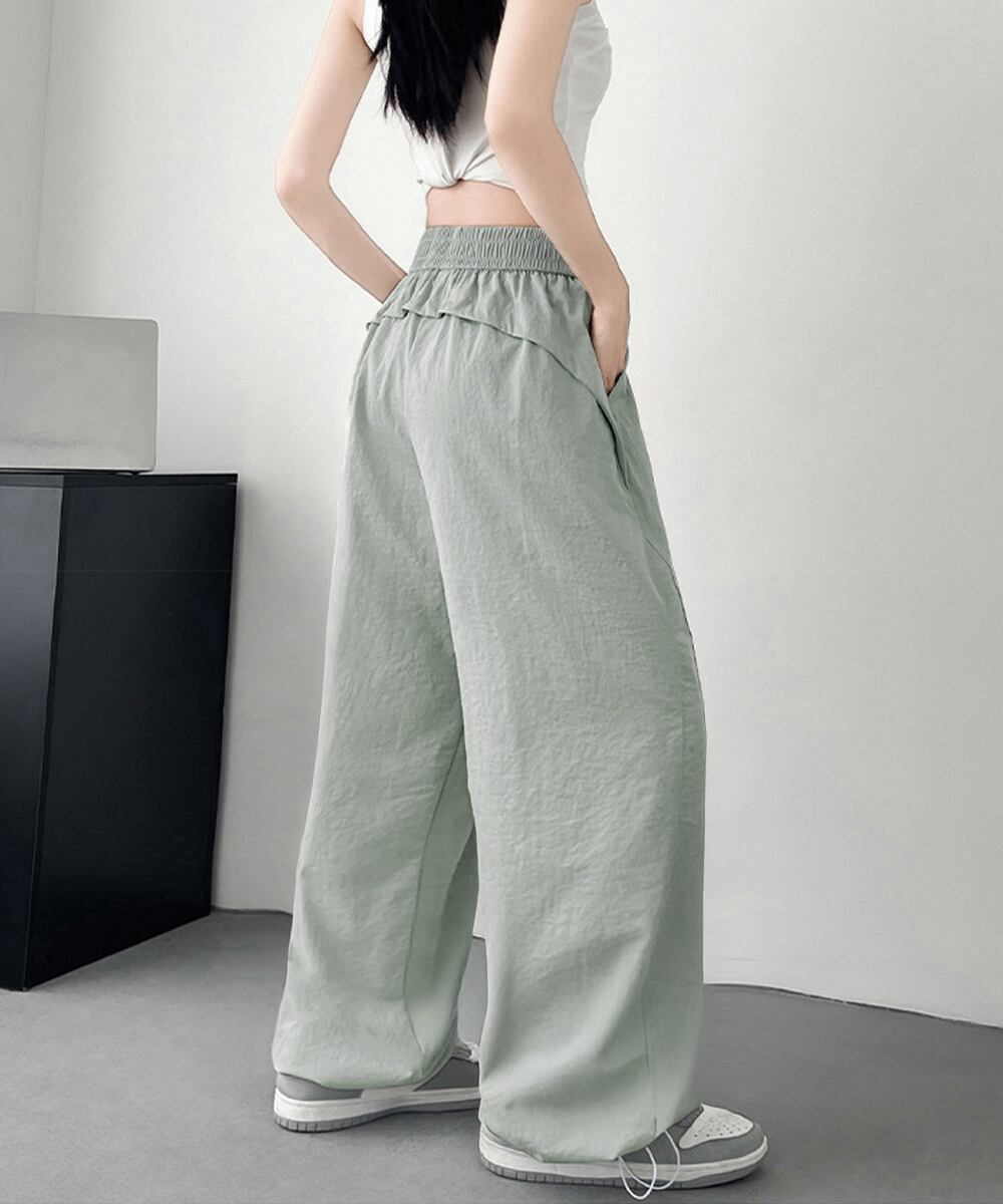 ハイウエスト ゆったり ワークパンツ ドローストリング イージーパンツ ウエストゴム 薄手パラシュートパンツ春夏 着やせ