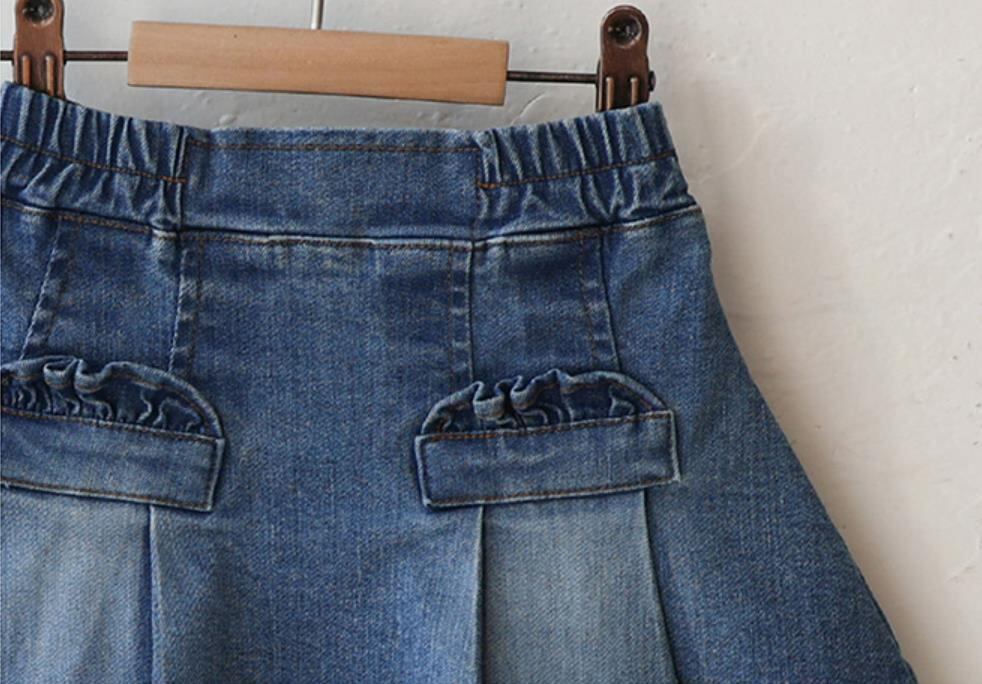 韓国風デザインのハイウエストデニムミニスカートは、おしゃれで動きやすさも抜群の一着です!ギャザーとプリーツのディテールが可愛らしい印象を与え、普段着にも特別な日にもぴったりです。90CMから150CMまで対応し、お子様の成長に合わせて長くご愛用いただけます。